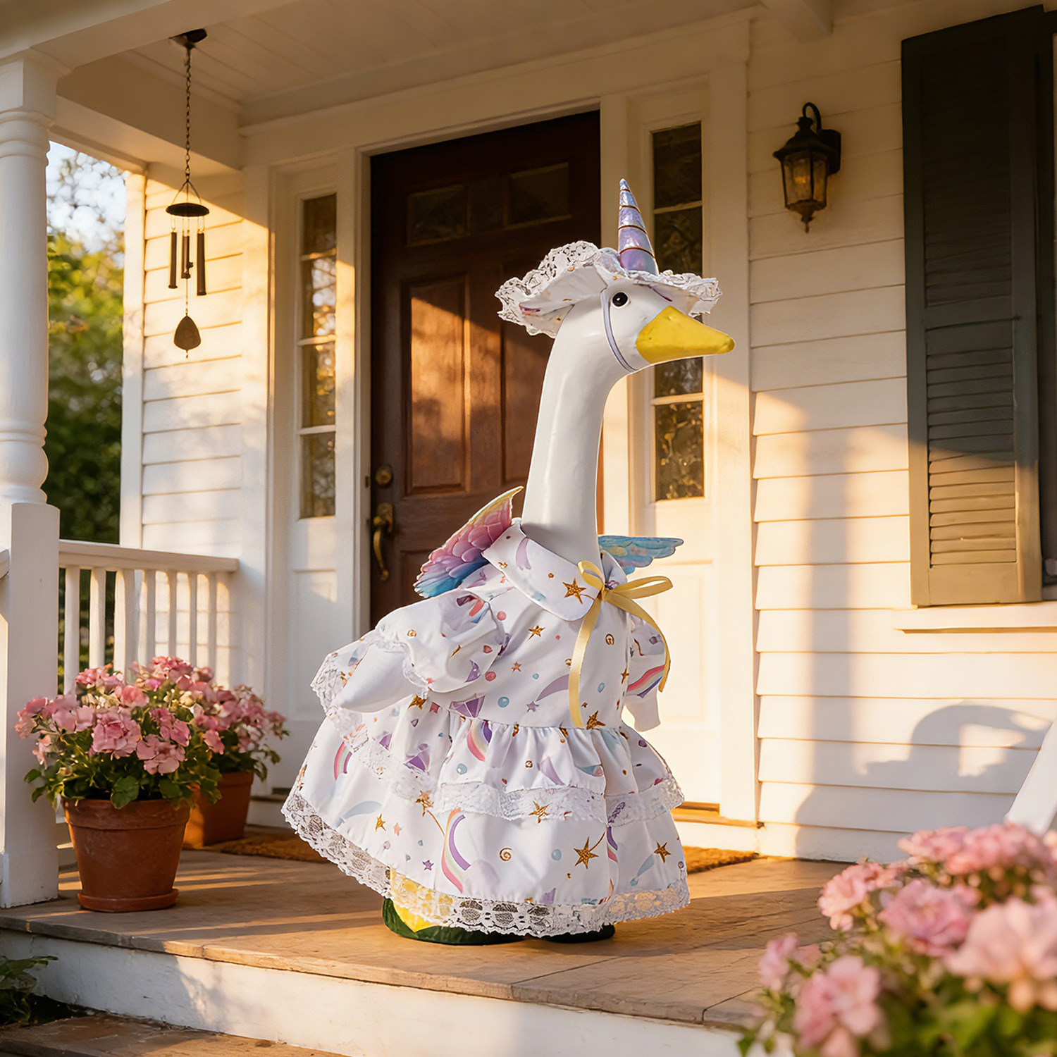 3.Specifically tailored to fit 23-inch decorative porch geese, ensuring a snug and charming look.