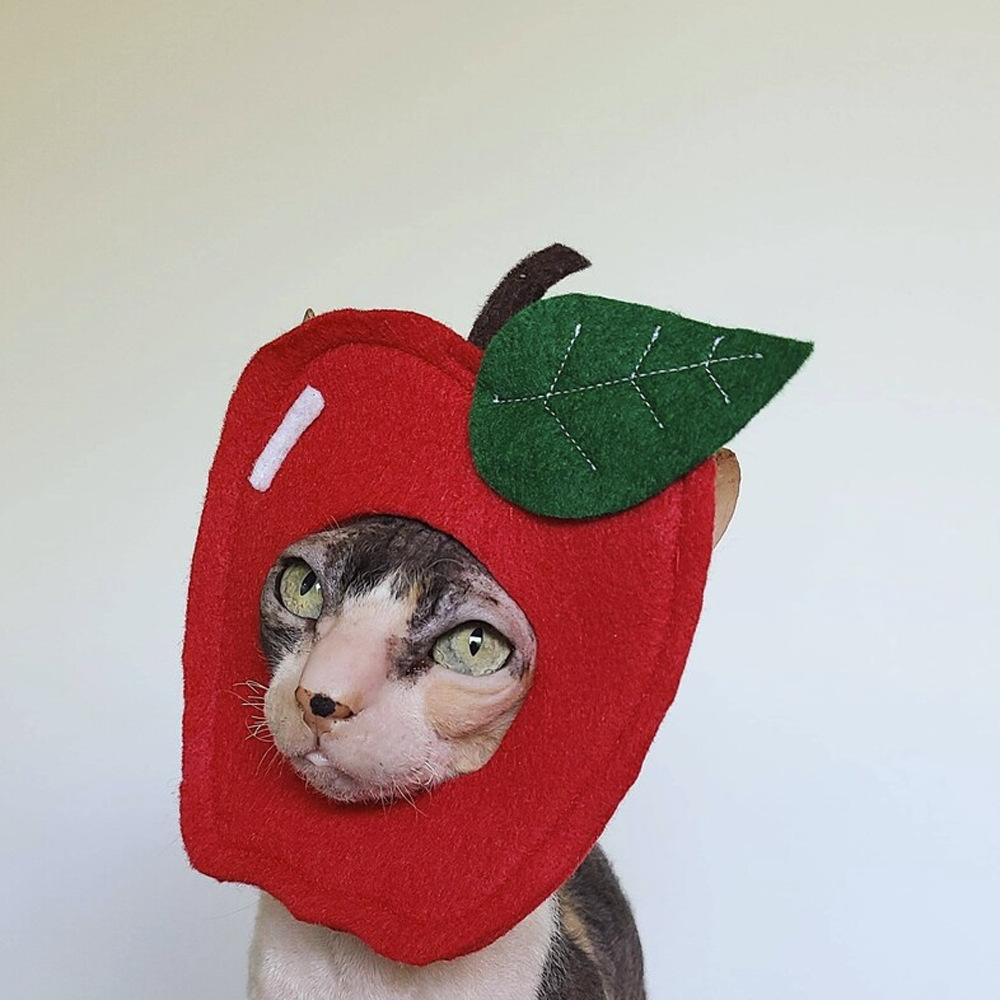 1.Adorable felt apple-shaped hat designed for dogs and cats—perfect for playful photo sessions and social media content.